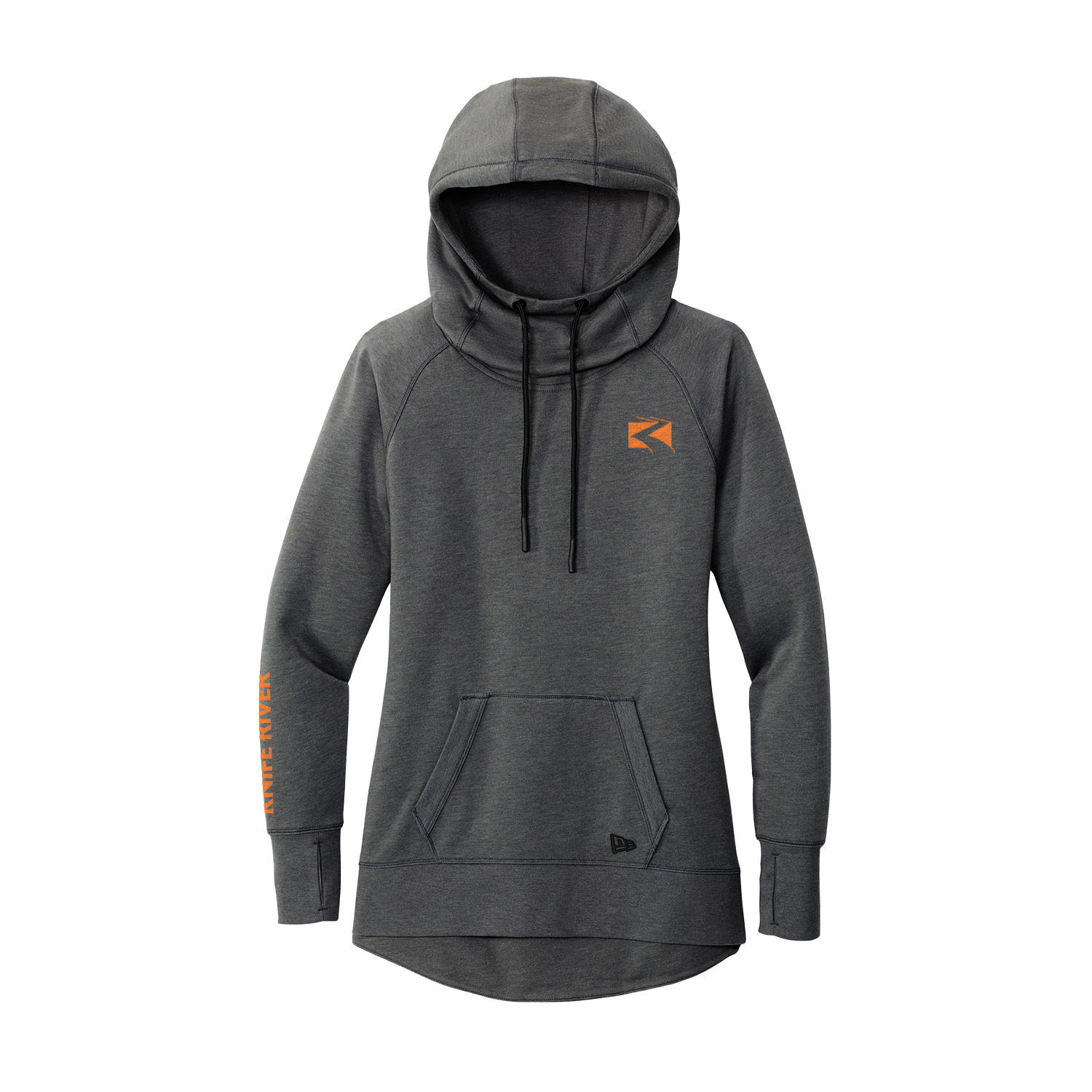 7.1-ounce, 55/34/11 cotton/poly/rayon fleece Longer length Coverstitched seams 3-panel hood Cowl neck Heat transfer label for tag-free comfort Embossed New Era neck and shoulder taping Matte black grommets Hand-dipped, silicone-tipped drawcords Raglan sleeves Front pouch pocket Embossed silicone New Era flag logo on pocket Rib knit pocket detail Thumbholes Rib knit cuffs and hem Curved drop tail hem