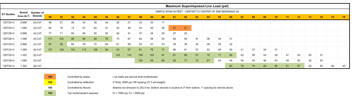 50′ 56′ 62′ 68′ 74′ 80′ 86′ Span Length DT 24 50′ - 62′ DT 28 50′ - 66′ DT 32 50′ - 74′ DT 36 50′ - 76′