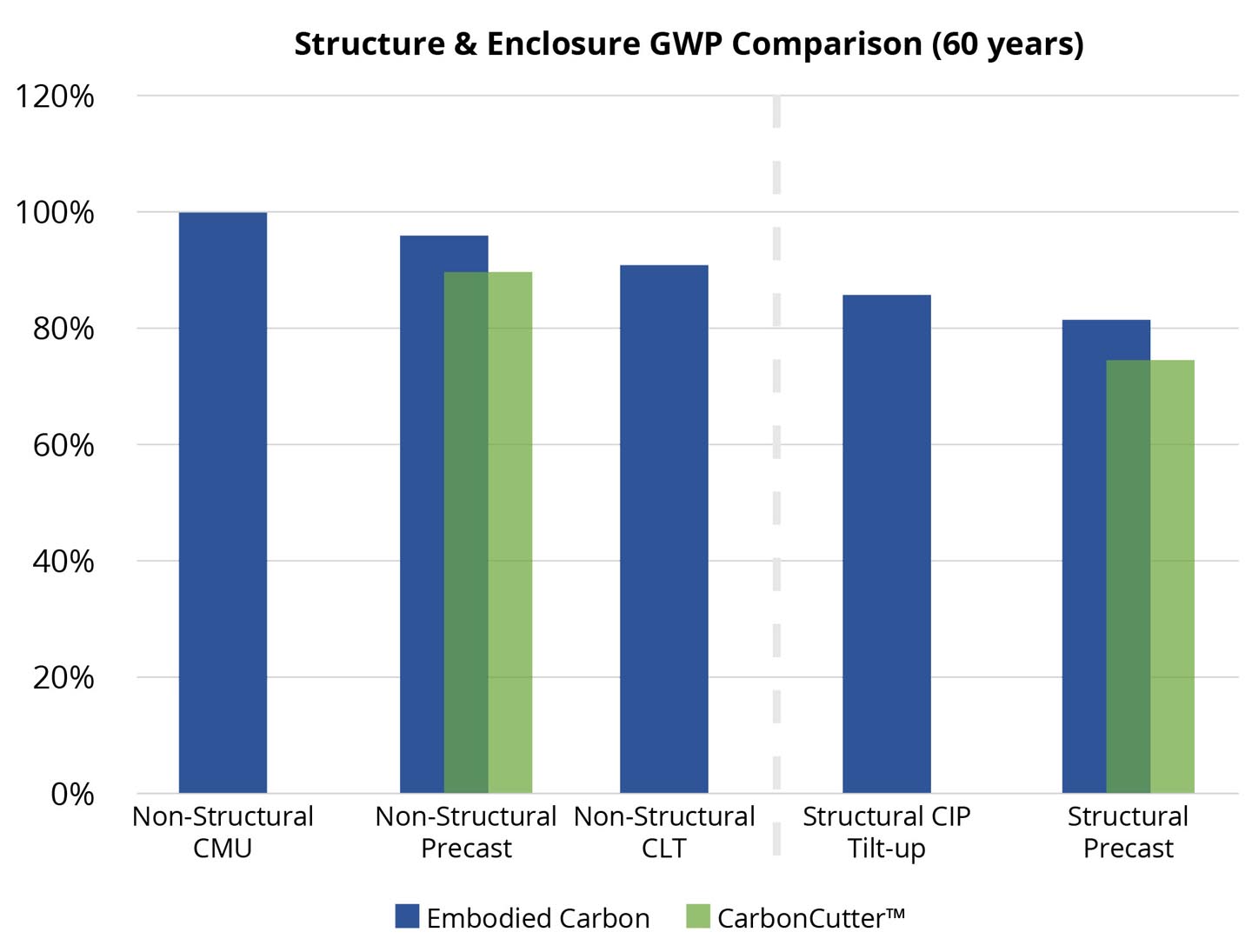 lower embodied carbon than conventional CMU designs.